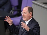 GDN - SPD-Kanzlerkandidat Peer Steinbrück hat Bundeskanzlerin Angela Merkel (CDU) zu Ehrlichkeit in der Debatte um die Eur...